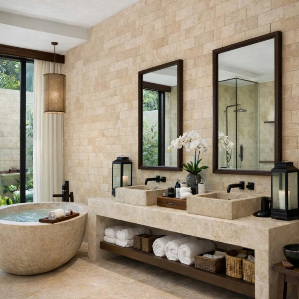 Durável por essência, o Travertino atravessa gerações preservando sua nobreza.