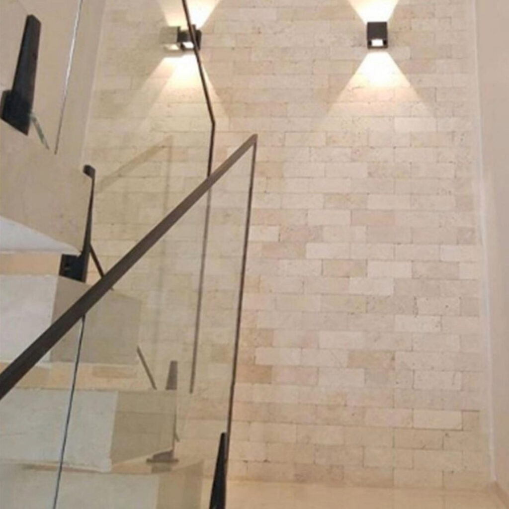 Formado ao longo de milênios por processos minerais silenciosos, o Travertino revela superfícies de beleza serena — veios suaves, tonalidades quentes e texturas que carregam a memória da terra.