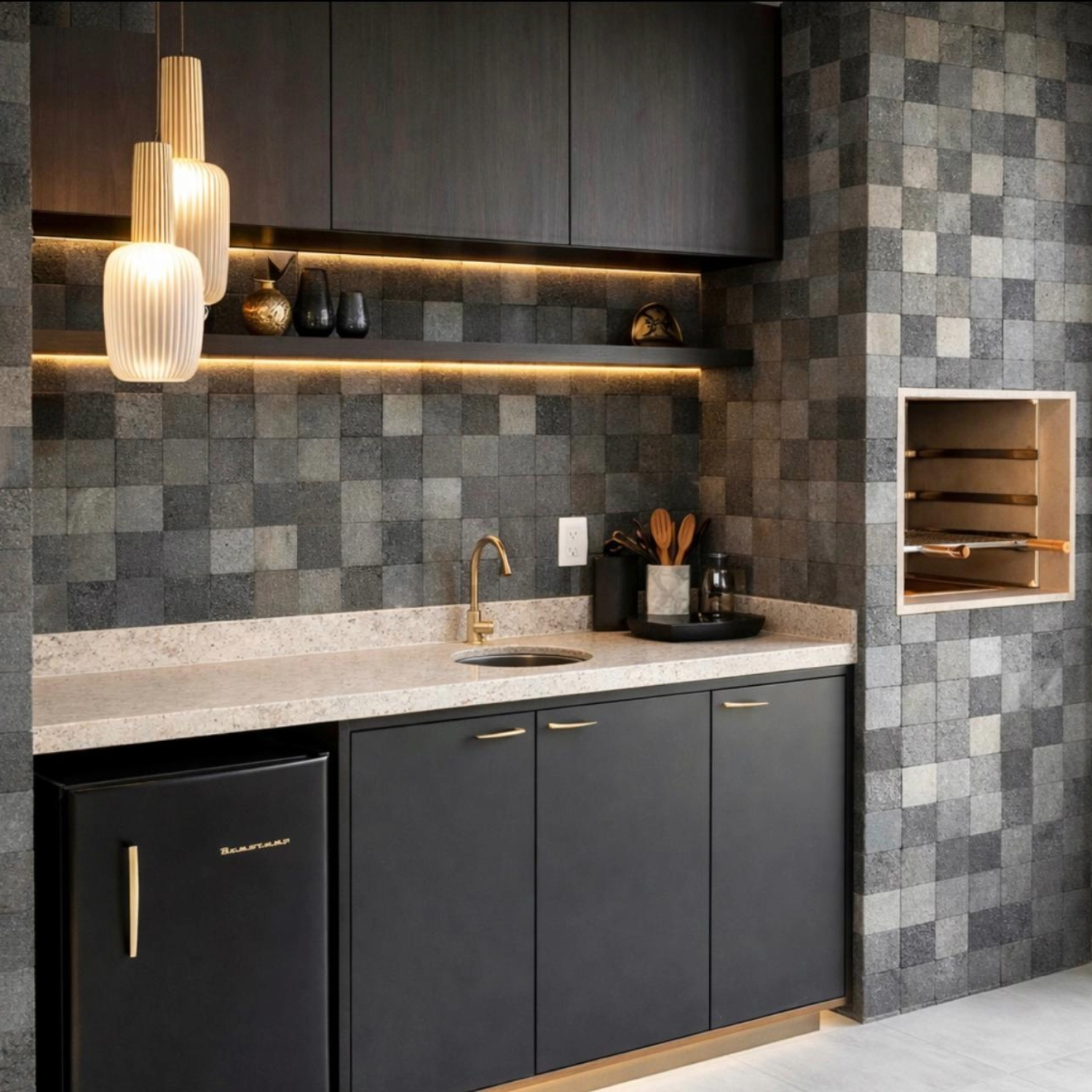 Diferente de revestimentos industrializados, a Pedra Hitam preserva sua textura mineral natural, com variações sutis de tonalidade e estrutura que enriquecem o resultado arquitetônico.