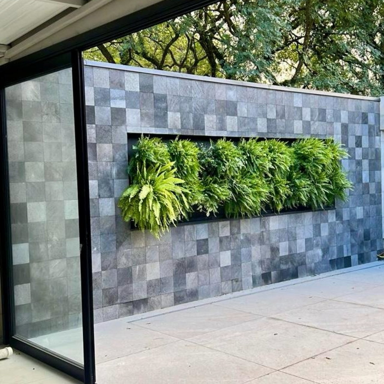 Na arquitetura internacional, ela é frequentemente utilizada em piscinas, cascatas, espelhos d’água e paredes externas, criando superfícies que valorizam a relação entre água, luz e textura natural.